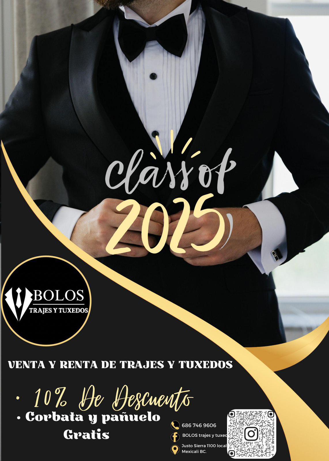 ¡Gradúate con estilo! 10% de descuento en BOLOS y corbata + pañuelo gratis. Visítanos en Justo Sierra 1100, Mexicali. WhatsApp: 686 746 9606 🎓👔